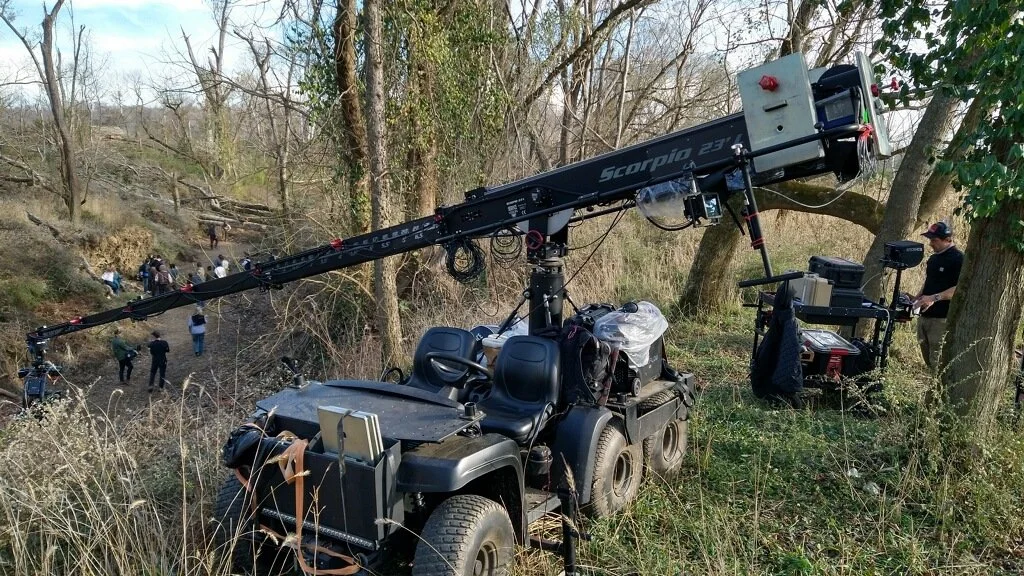 Our mobile crane base allows for quick repositioning of the crane and the ability to drive it to hard to reach areas. Complete with silent on board power, no noisy generator is needed to run the crane and accessories.